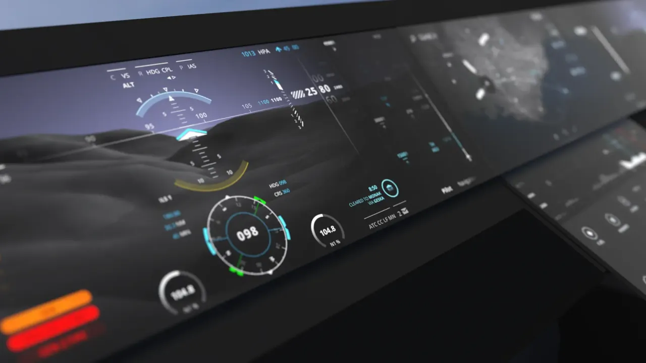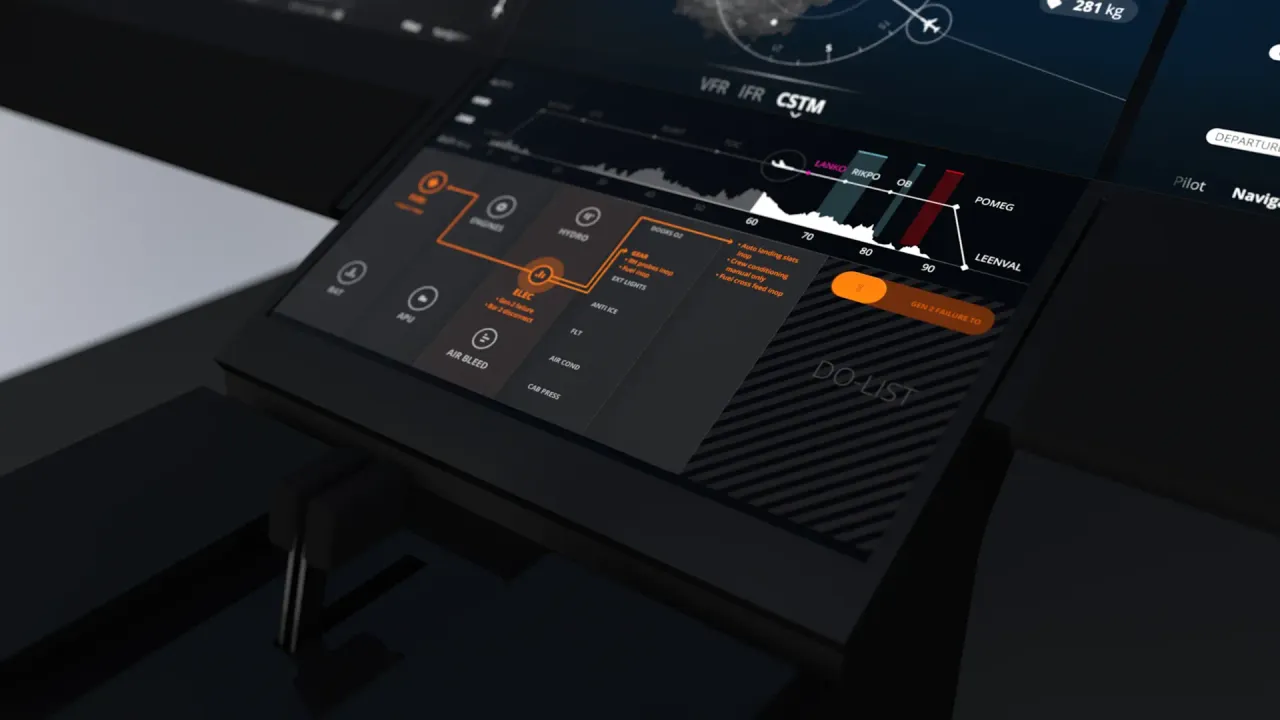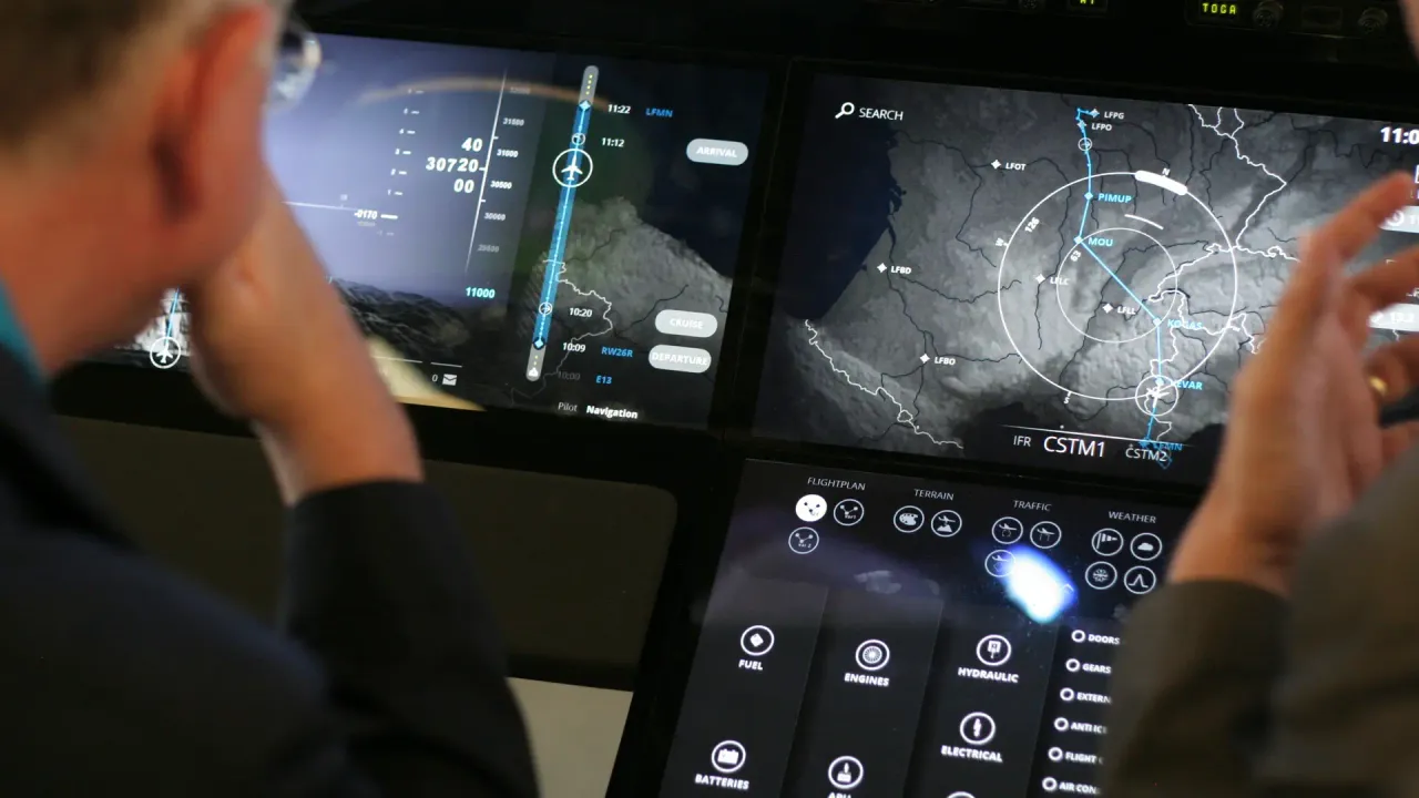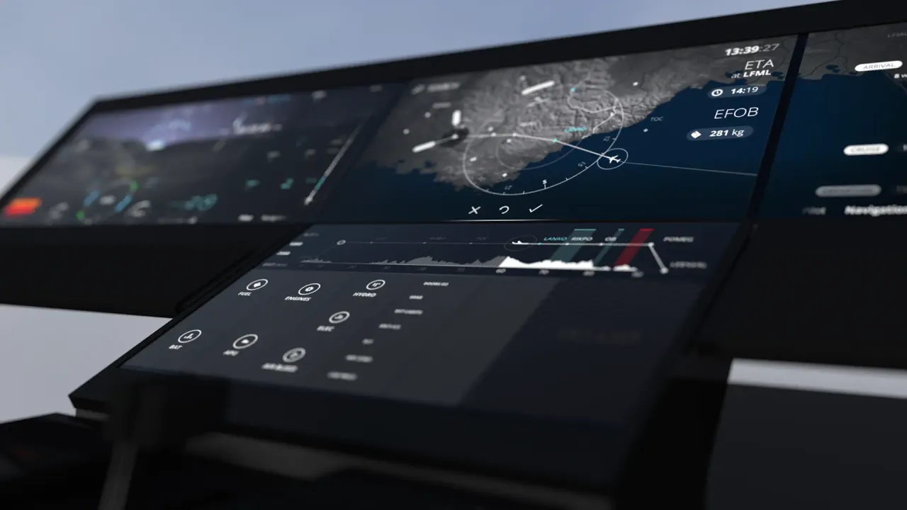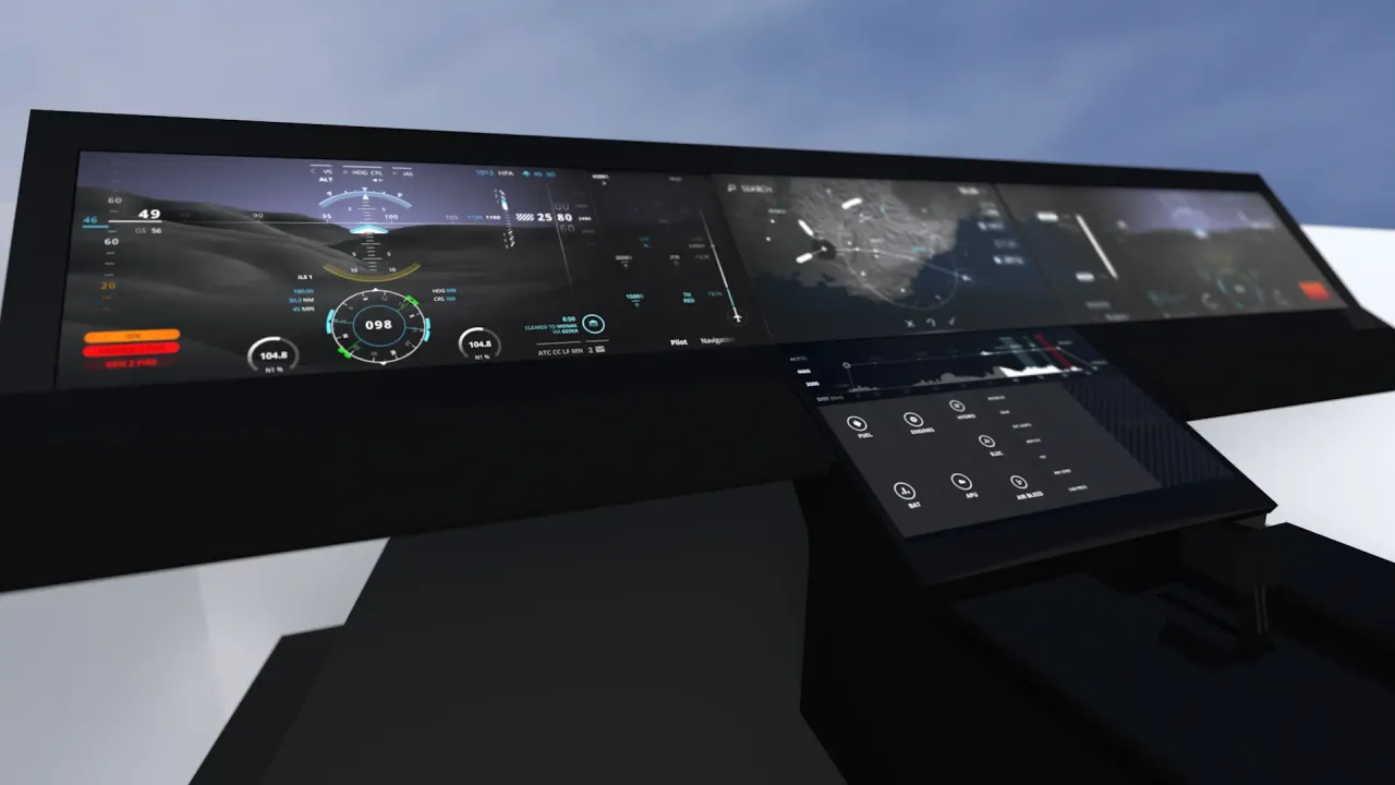 Ce projet de tableau de bord réalisé pour Thales tente d’intégrer toutes les fonctions de pilotage d’un avion de ligne dans un dispositif tactile.